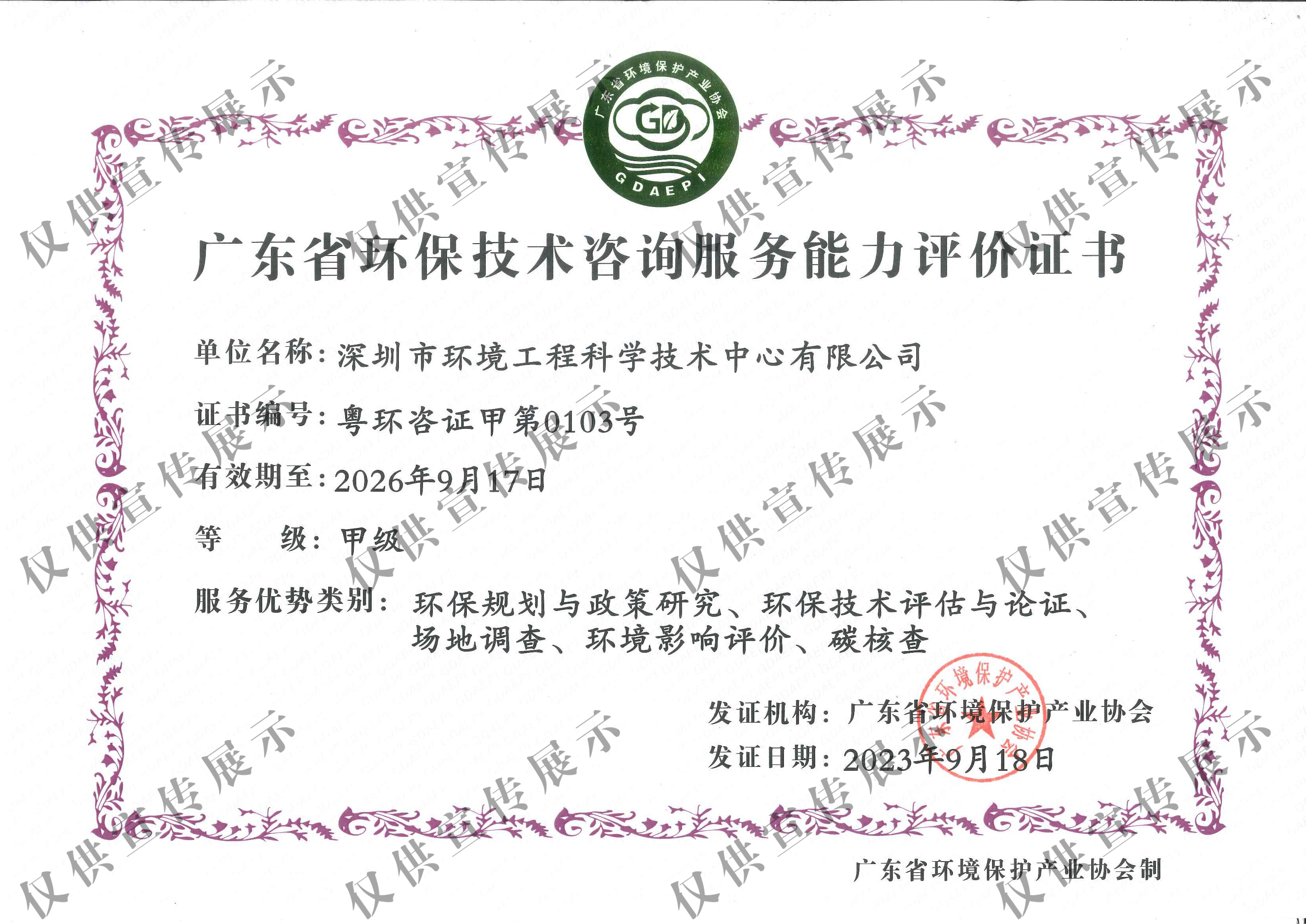 廣東省環(huán)保技術(shù)咨詢服務(wù)能力評(píng)價(jià)證書