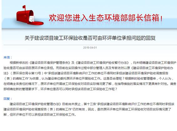 2019年4月1日在部長信箱《關(guān)于建設(shè)項目竣工環(huán)保驗收是否可由環(huán)評單位承擔(dān)問題的回復(fù)》中結(jié)論:“雖然原環(huán)評單位開展竣工環(huán)保驗收對項目實際情況更了解,但環(huán)評單位不可以承擔(dān)該項目竣工環(huán)保驗收工作”,我們有一些疑惑: 1、《建設(shè)項目竣工環(huán)境保護驗收管理辦法》第十三條“承擔(dān)該建設(shè)項目環(huán)境影響評價工作的單位不得同時承擔(dān)該建設(shè)項目環(huán)境保護驗收調(diào)查報告(表)的編制工作”確實仍然有效,但其針對的是生態(tài)影響類建設(shè)項目的環(huán)保驗收調(diào)查報告,污染性項目驗收監(jiān)測報告編制工作是否可不受上述條款限制,可由承擔(dān)該建設(shè)項目環(huán)境影響評價工作的單位編制? 2、如果上述條款的解讀包含了污染性項目驗收監(jiān)測報告的編制工作,那在《管理辦法》實施起至部長信箱回復(fù)期間,由承擔(dān)環(huán)境影響評價工作的技術(shù)機構(gòu)編制污染性項目驗收監(jiān)測報告的行為是否合規(guī),是否有補救措施?