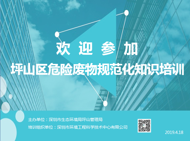 2019418日,由深圳市生態(tài)環(huán)境局坪山管理局主辦、深圳市環(huán)境工程科學(xué)技術(shù)中心承辦的“危險廢物規(guī)范化知識培訓(xùn)”在坪山區(qū)行政服務(wù)大廳2樓會議室舉行,到場領(lǐng)導(dǎo)對此次培訓(xùn)用“三好”給予鼓勵:專家授課講得好,企業(yè)代表聽得好,承辦單位組織得好。