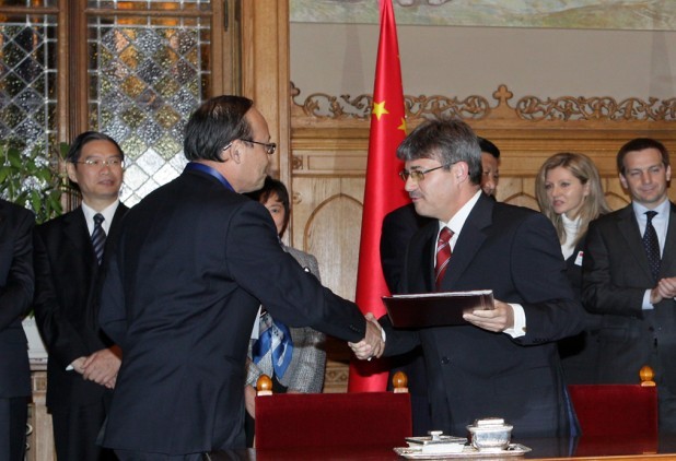 國家副主席習近平和匈牙利總理鮑伊瑙伊共同出席了雙方合作文件的簽字儀式。